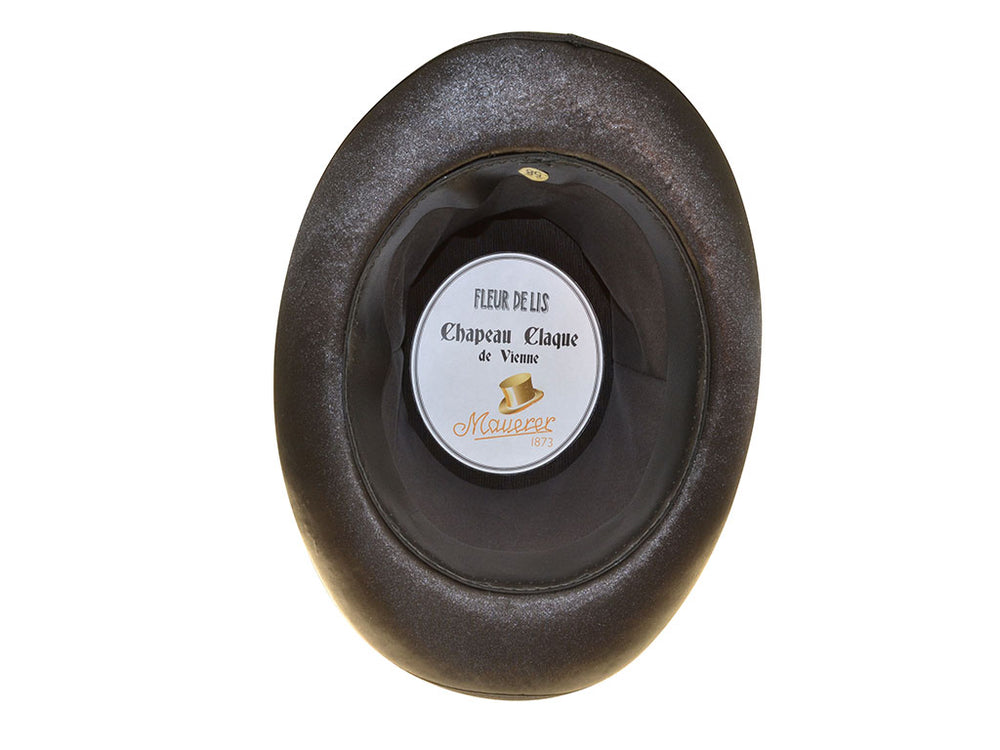 Ein Kopfbedeckung für sämtliche förmlichen Events – sei es die eigene Hochzeit oder ein Besuch beim Opernball. Seit 2015 ist unsere elegante ASCOT-Farbvariante in Hellgrau, akzentuiert mit einem schwarzen Band und passendem Saum, zurück in unserem Sortiment. Ideal für Tage beim Pferderennen, umgeben von prickelndem Champagner! Der Chapeau Opéra lässt Sie zum Kreis der Eingeweihten zählen! Die ASCOT-Farbauswahl harmoniert zudem perfekt mit dem Cutaway-Frack für exklusive Hochzeitszeremonien. Ein besonderes Highlight ist das luxuriöse weiße Innenfutter, verziert mit einem Goldaufdruck.