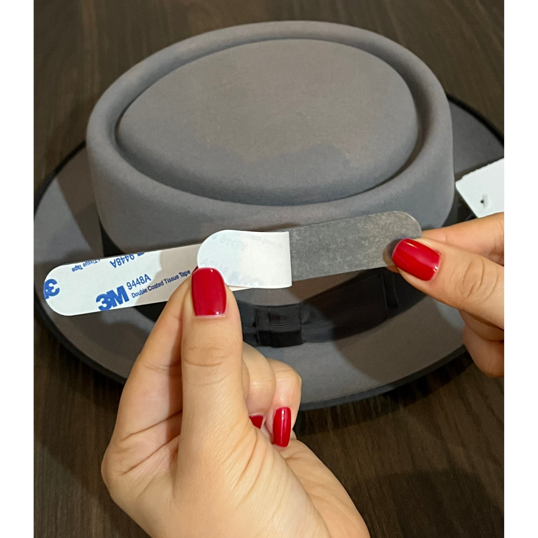 Kleben Sie den Einlagestreifen an die Innenseite, an der der Hut den größten Abstand zu Ihrem Kopf aufweist.