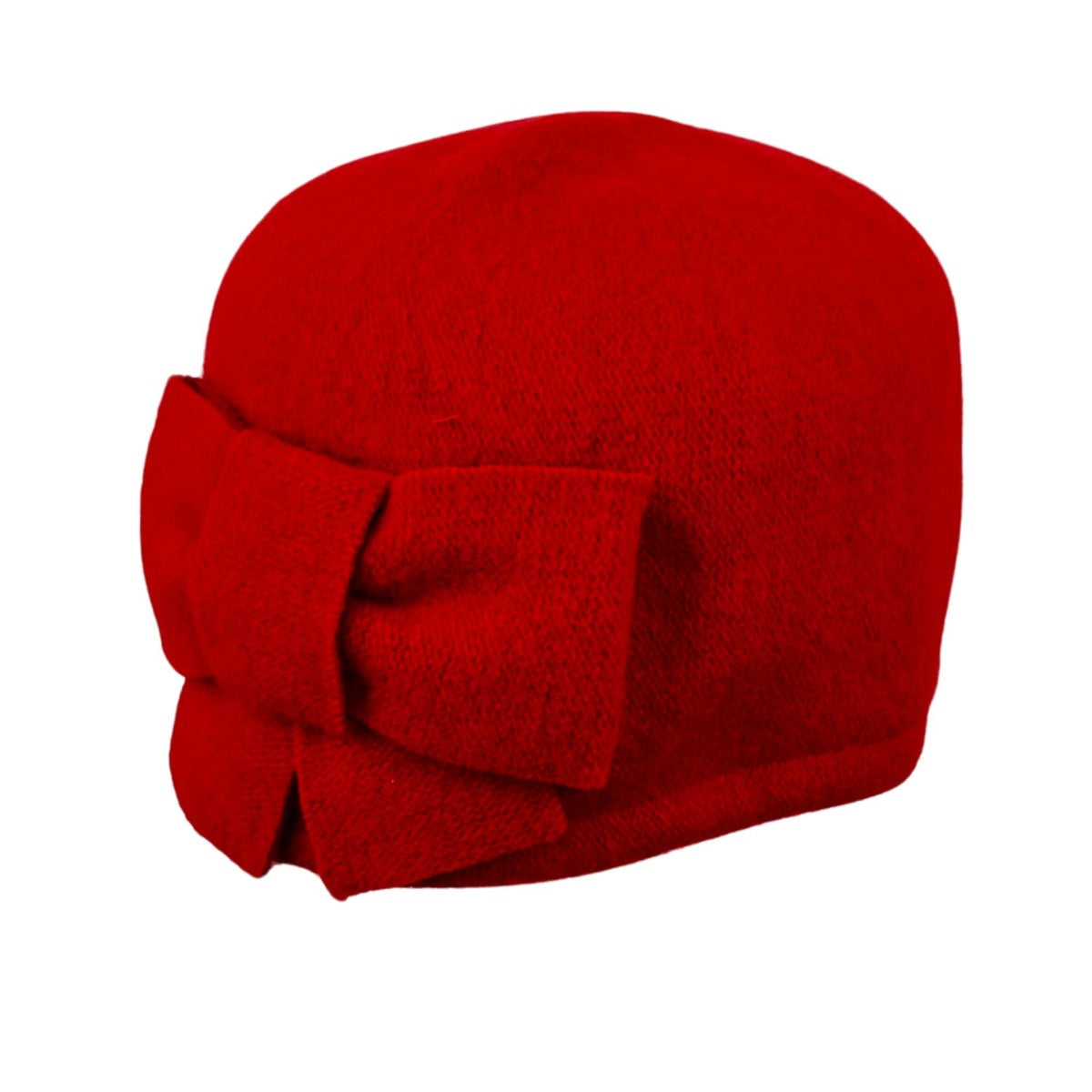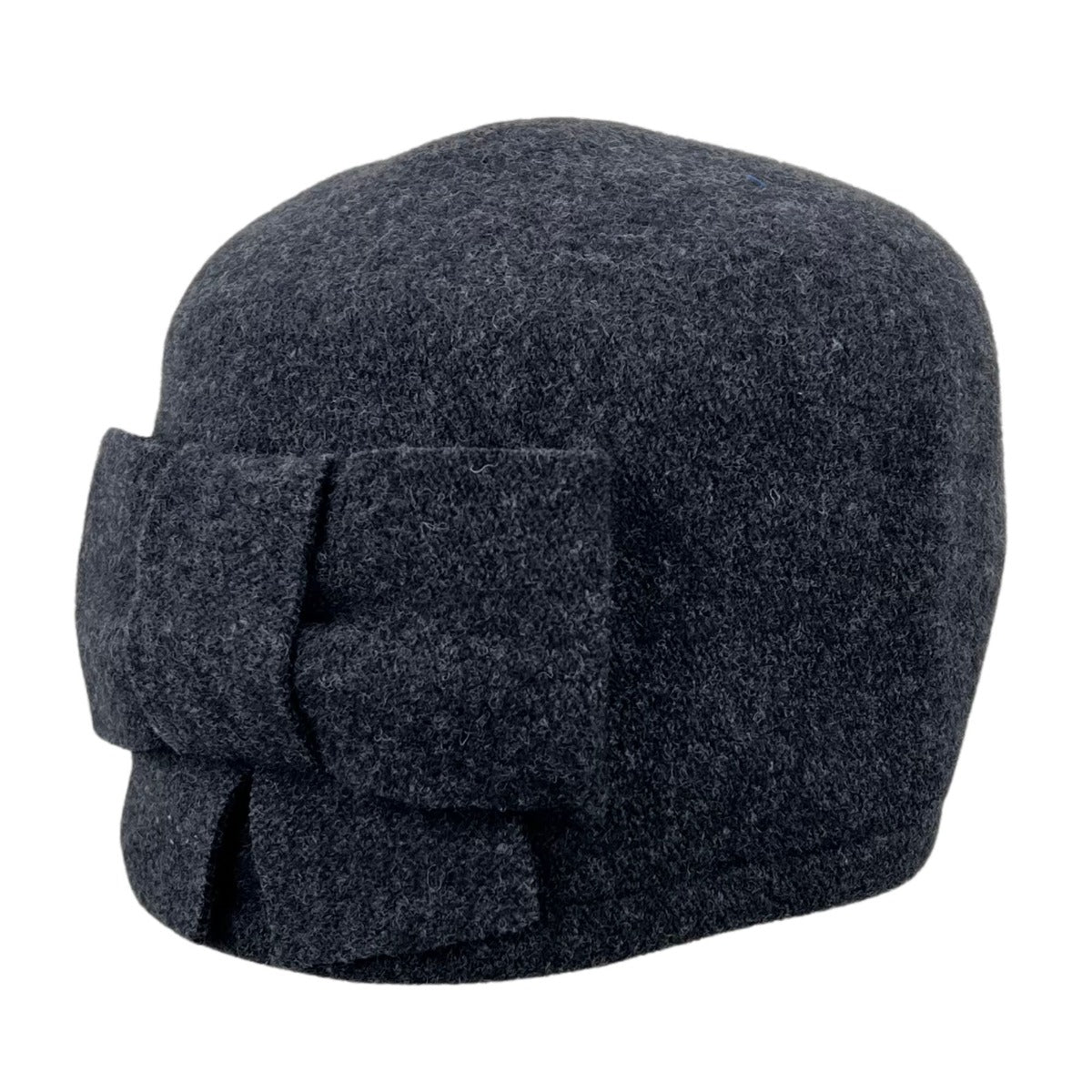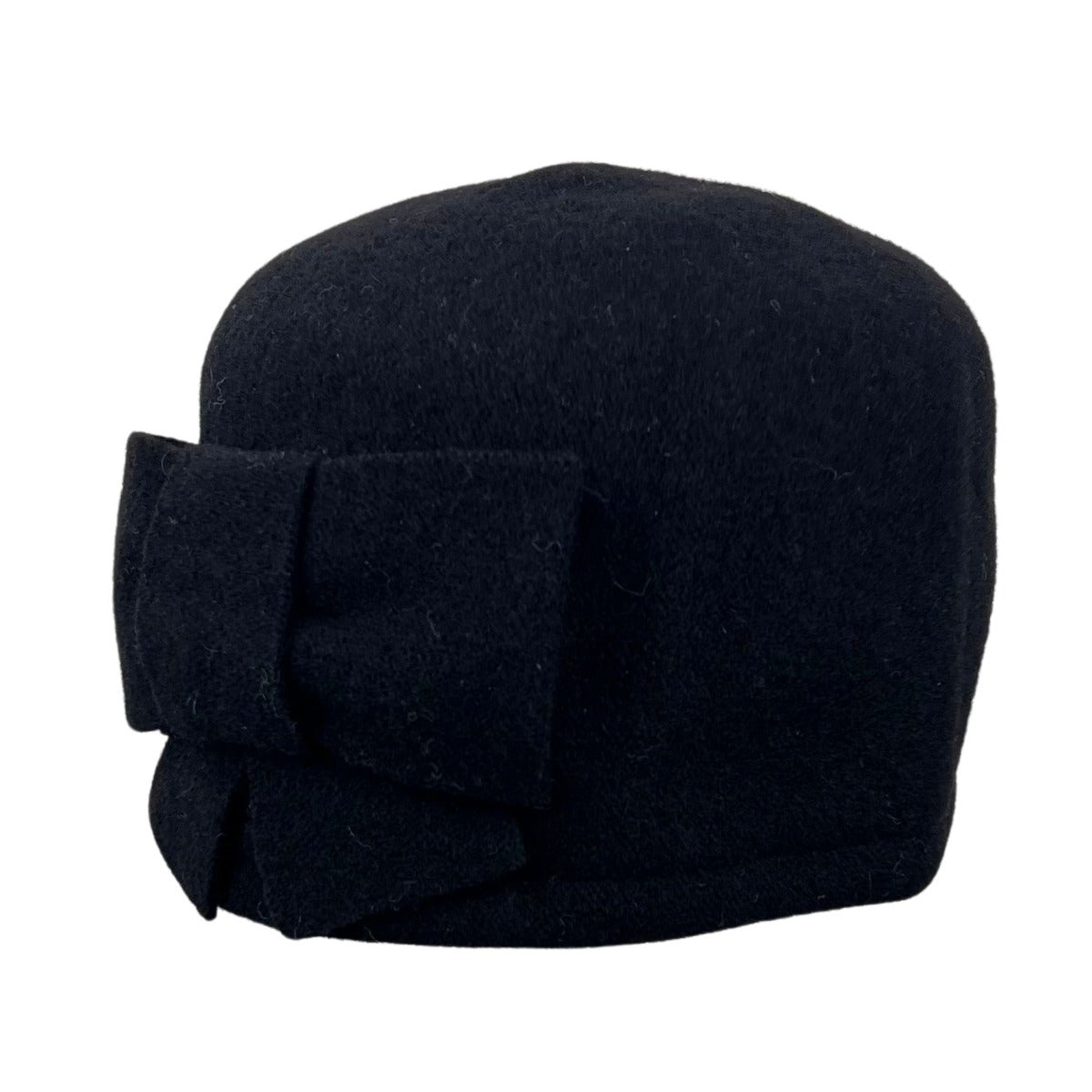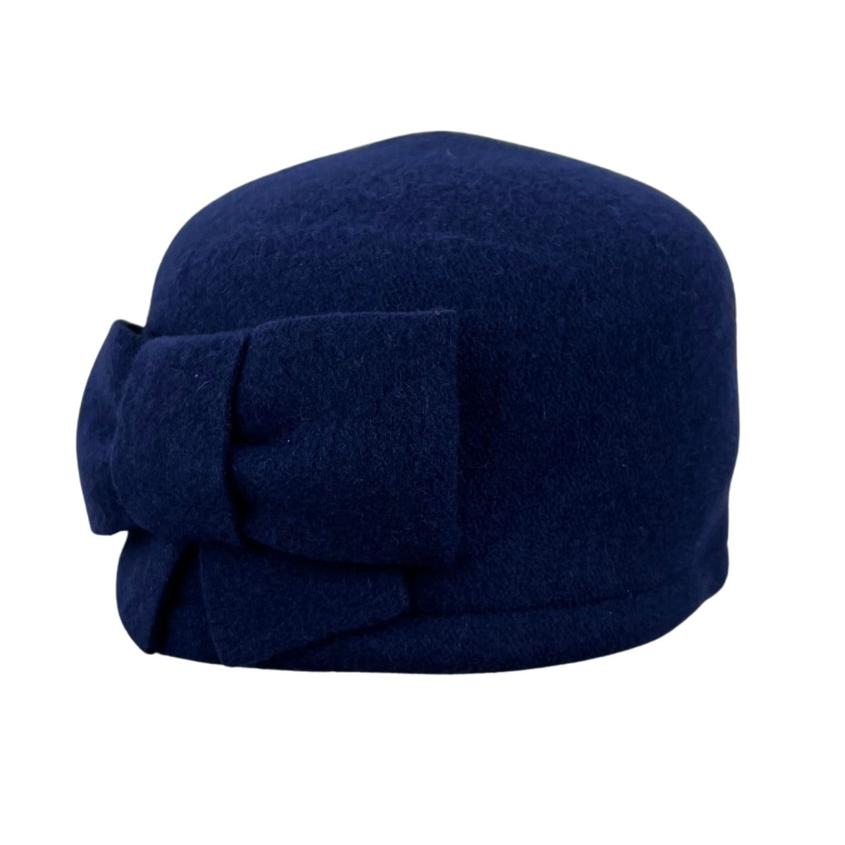 Das absolute Highlight ist die große, tonale Schleife an der Seite – sie verleiht dem Modell eine verspielte, feminine Note, ohne aufdringlich zu wirken. Der schlichte, runde Schnitt ohne Krempe sorgt für eine zeitlose Silhouette, die sowohl zu schicken Mänteln als auch zu modernen Jacken passt.
