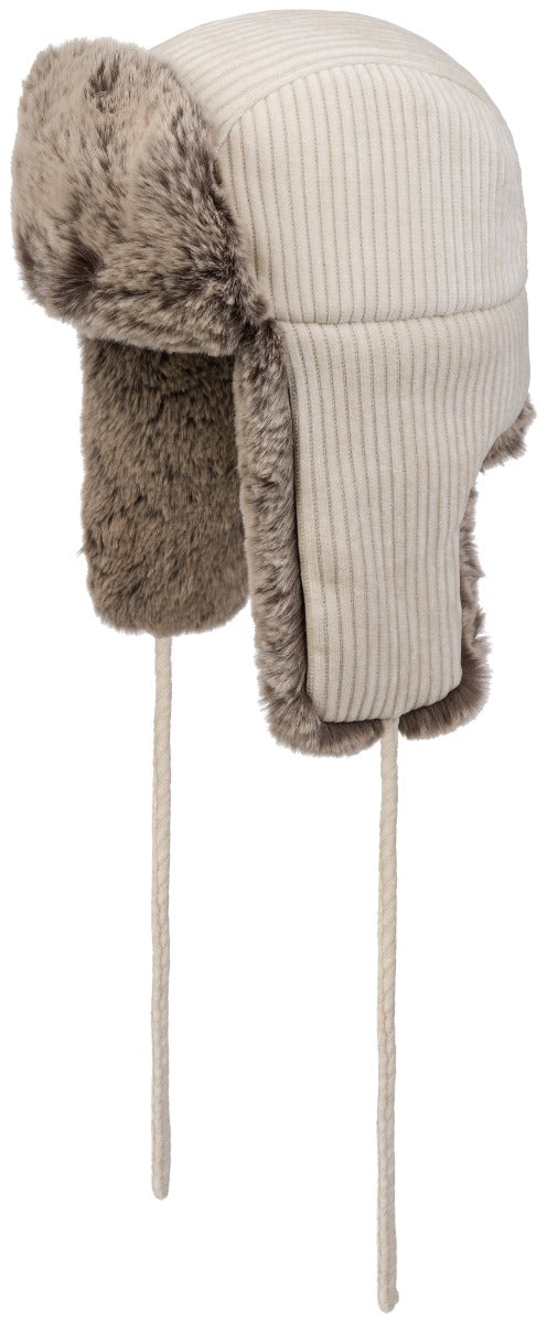 Optisch überzeugt die Mütze durch ihren coolen Vintage-Look – egal ob du dich für Schwarz, Weiß oder Beige entscheidest, sie lässt sich ideal kombinieren und verleiht deinem Winteroutfit das gewisse Extra. Der grobe Cord sorgt für Struktur, während das Fellfutter angenehm warm auf der Haut liegt.
