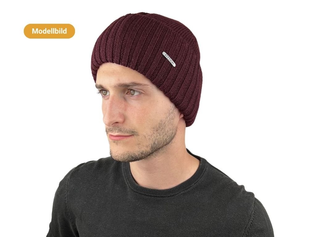 Auch wirklich harten Jungs wird mal kalt um die Ohren! Die Northport von STETSON ist dann das richtige Gegenmittel. Man möchte meinen die Stetson Leute haben die Schafe selbst ausgesucht, so weich und angenehm greift sich dieser Wollstrick an. Die großzügige Stulpe ist 3-lagig: Einmal der am Kopf anliegende Teil, dann die zweite Lage umgelegt hinauf und die dritte wieder in die so entstandene Stulpe hinein. Diese ist mit einer Punktnaht hinten fixiert. Die Northport von Stetson ist eine klassische Dockermütze in unvergleichlich guter Qualität und Passform